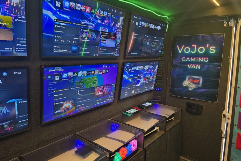 VoJo’s Gaming Van is a fully equipped mobile gaming theatre packed with: