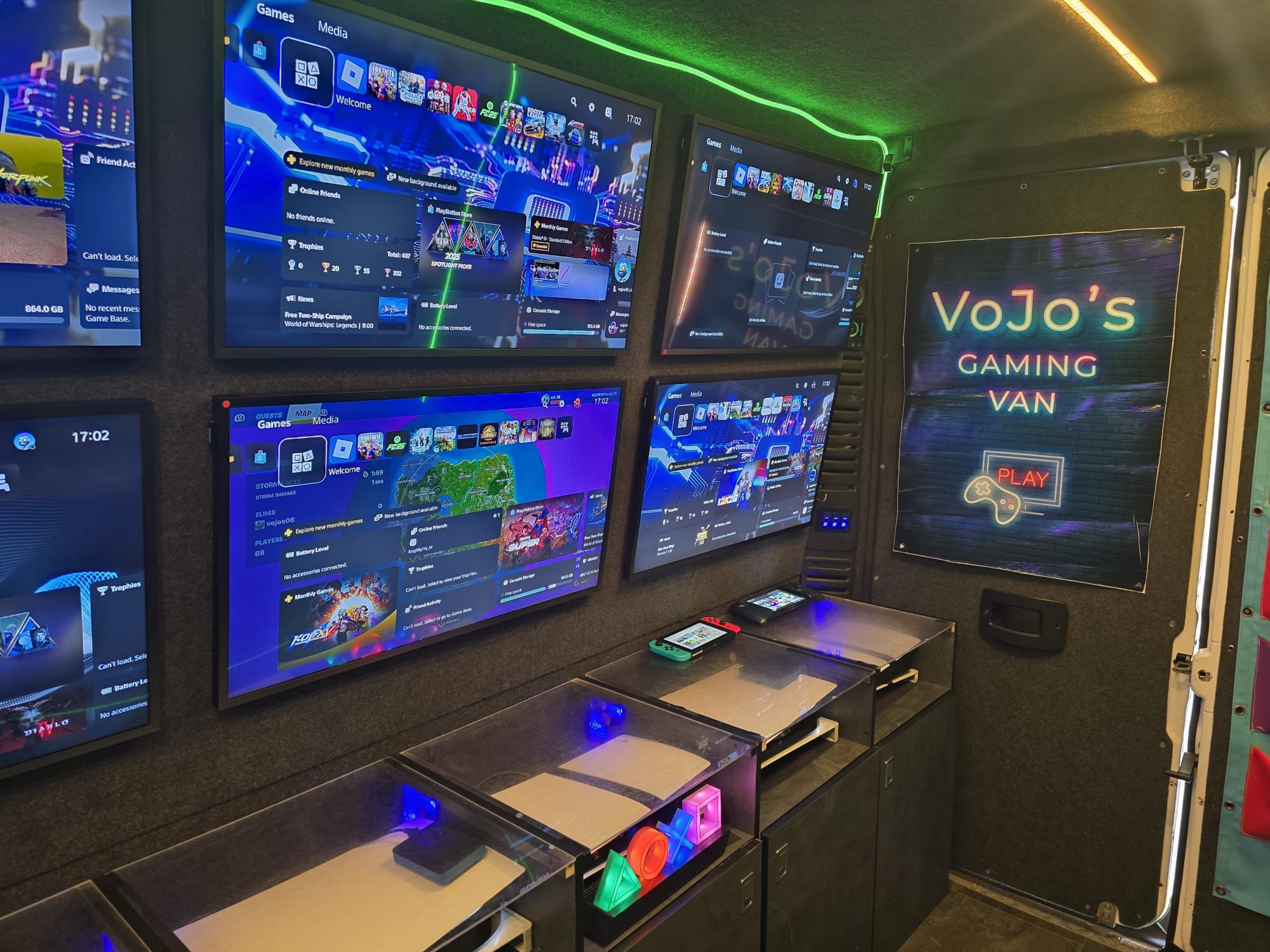VoJo’s Gaming Van is a fully equipped mobile gaming theatre packed with: